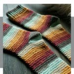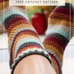 These toe-up, short row heel socks are crocheted using the Herringbone Half Double Crochet stitch. If you need a tutorial for that, make sure you check out this post. If this is your first foray into crocheting short row socks, I highly recommend following along with the beginner-friendly Toe-Tally Easy Sock VIDEO tutorial.