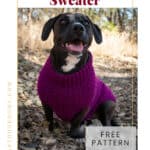 The Stellar Dog Sweater is a fun, free, and quick crochet pattern that is so stylish and warm! This pattern is available in size XS, S, and M, as my three pooches are modeling here. โฅ See the sizing chart below to see what size you need to make for your furry friend.