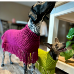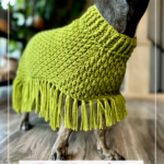 Sure, we can customize the Dandy Dog Sweater, the Stellar Dog Sweater, or the Wild Berry Dog Sweater pattern to be longer in the body – an easy and completely customizable design feature! – but what if we just made them a poncho instead?