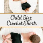 If you’ve ever thought of crocheting shorts for a baby, this pattern is for you! Whether you’re crocheting a pair of shorts for a newborn photo shoot, or to wear in the summer, or as a baby shower gift etc, these child size crochet shorts work up super fast and don’t take much yarn either!